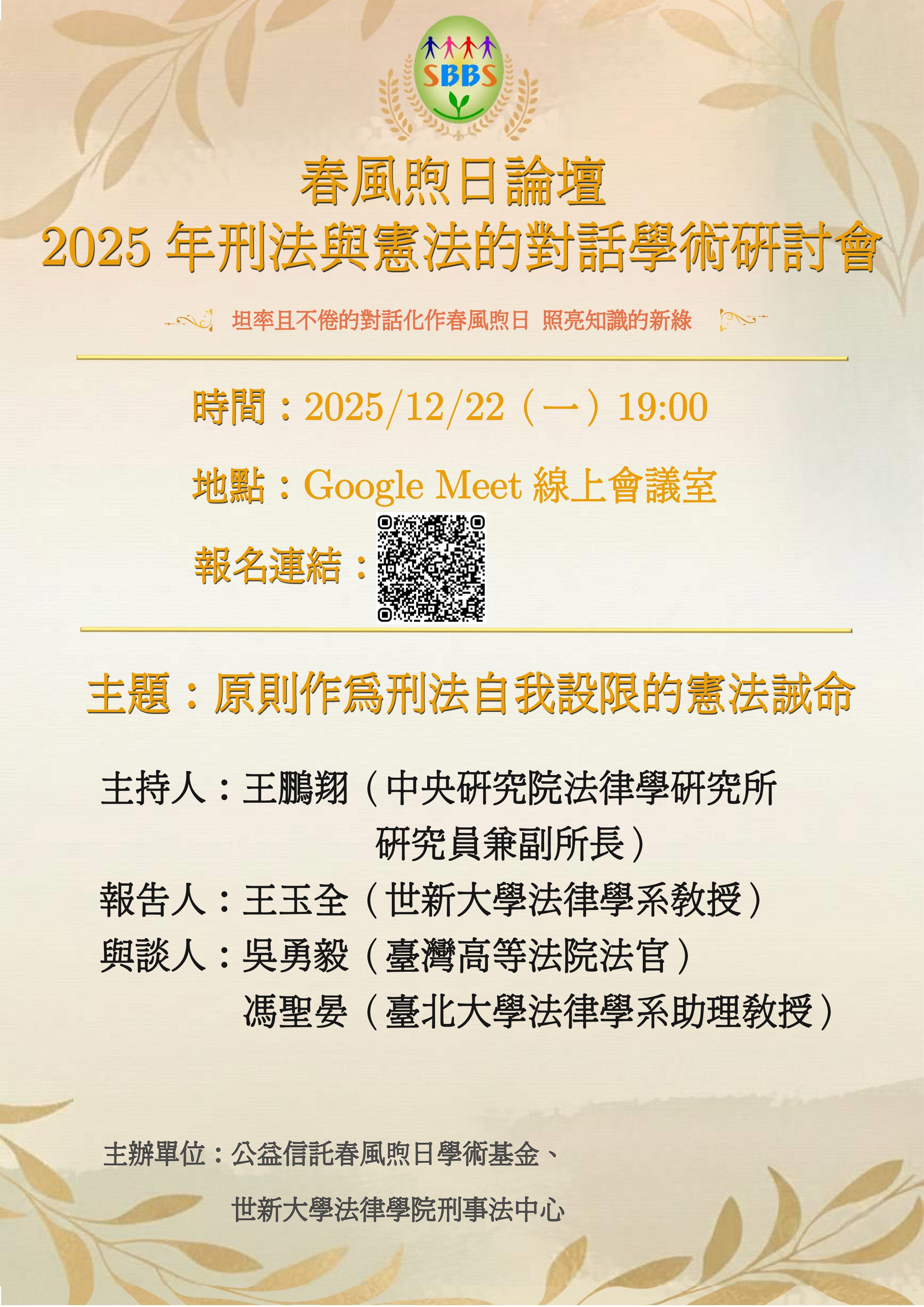 【活動轉知】春風煦日論壇 2025年刑法與憲法的對話學術研討會