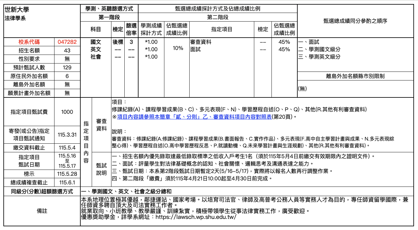 《115學年度招生校系分則》